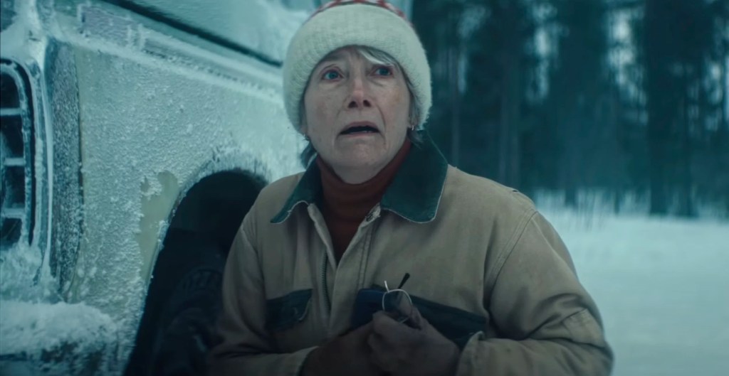 Dead of Winter follows Barb (Emma Thompson), an elderly woman who works at a bait and tackle shop in snowy Minnesota. Lonely and widowed recently, she often reminisces about her wonderful times with her husband Karl. One day, she decides to go to Lake Hilda, where they spent a lot of time together in their early days, and do some fishing like she used to love. However, she gets a bit lost, and due to being in the middle of nowhere, she has no service to find out where she is. When asking a local for directions to the Lake, Barb notices blood on the snow in their driveway. The man (Marc Menchaca) brushes it off as just a deer he hunted, but Barb is suspicious. When she finally arrives at the Lake, she hears screams and notices a girl (Laurel Marsden) running through the nearby woods, by that very same man that she just spoke to. Following them back to their cabin, Barb notices the girl tied up in the Man’s basement and makes a promise to get her out. Though when another woman (Judy Greer) arrives and starts ordering the man around, it becomes clear that this is not just a simple kidnapping.